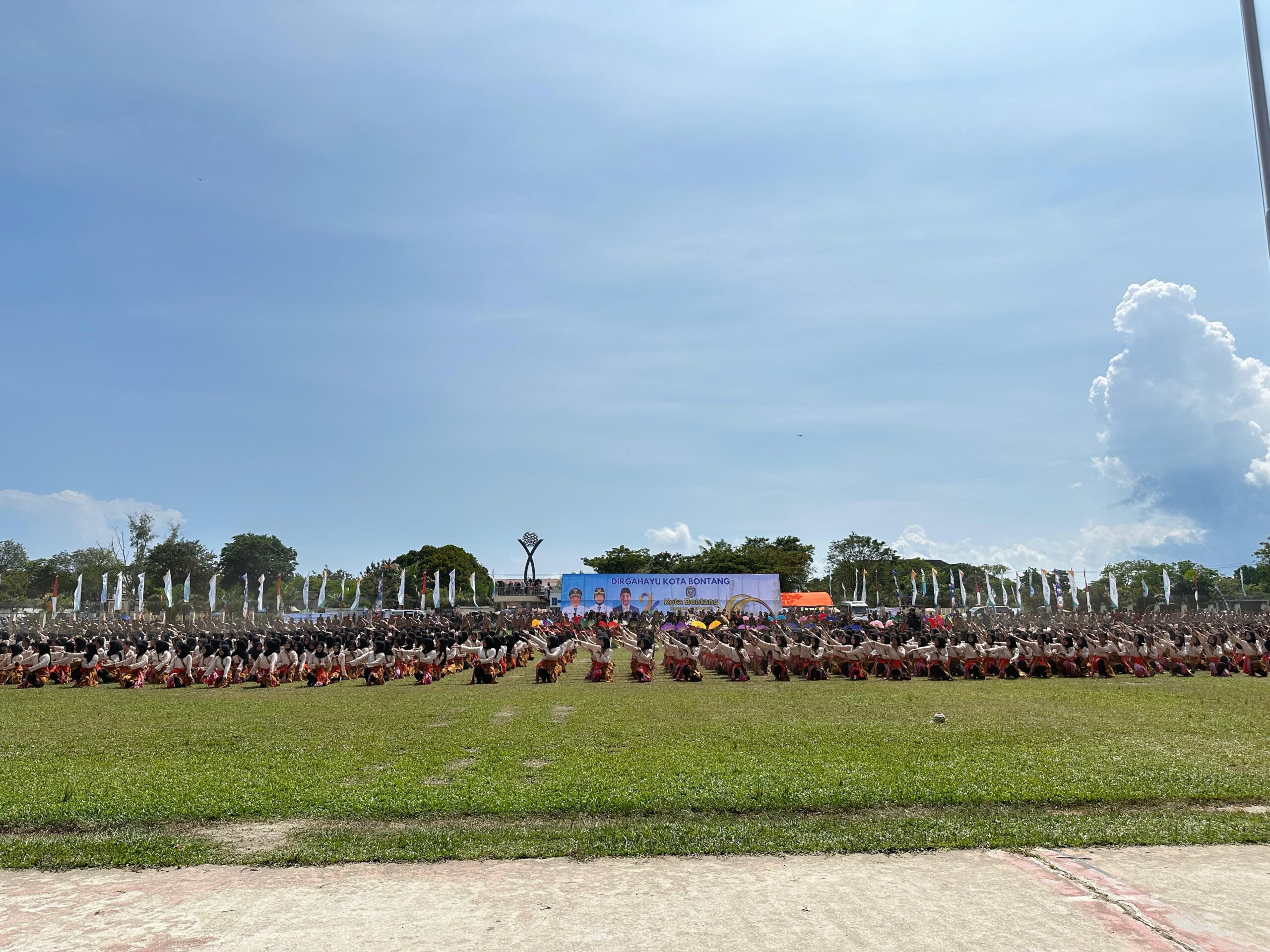 Ribuan penari Jepen memeriahkan Hari Ulang Tahun (HUT) ke-26 Kota Bontang, Rabu (15/10/2025), di Stadion Bessai Berinta Lang-Lang, Kelurahan Bontang Utara. BONTANG — Ribuan pelajar dari berbagai SMP dan MTs se-Kota Bontang menampilkan tarian massal Jepen untuk memeriahkan Hari Ulang Tahun (HUT) ke-26 Kota Bontang, Rabu (15/10/2025), di Stadion Bessai Berinta Lang-Lang, Kelurahan Bontang Utara.