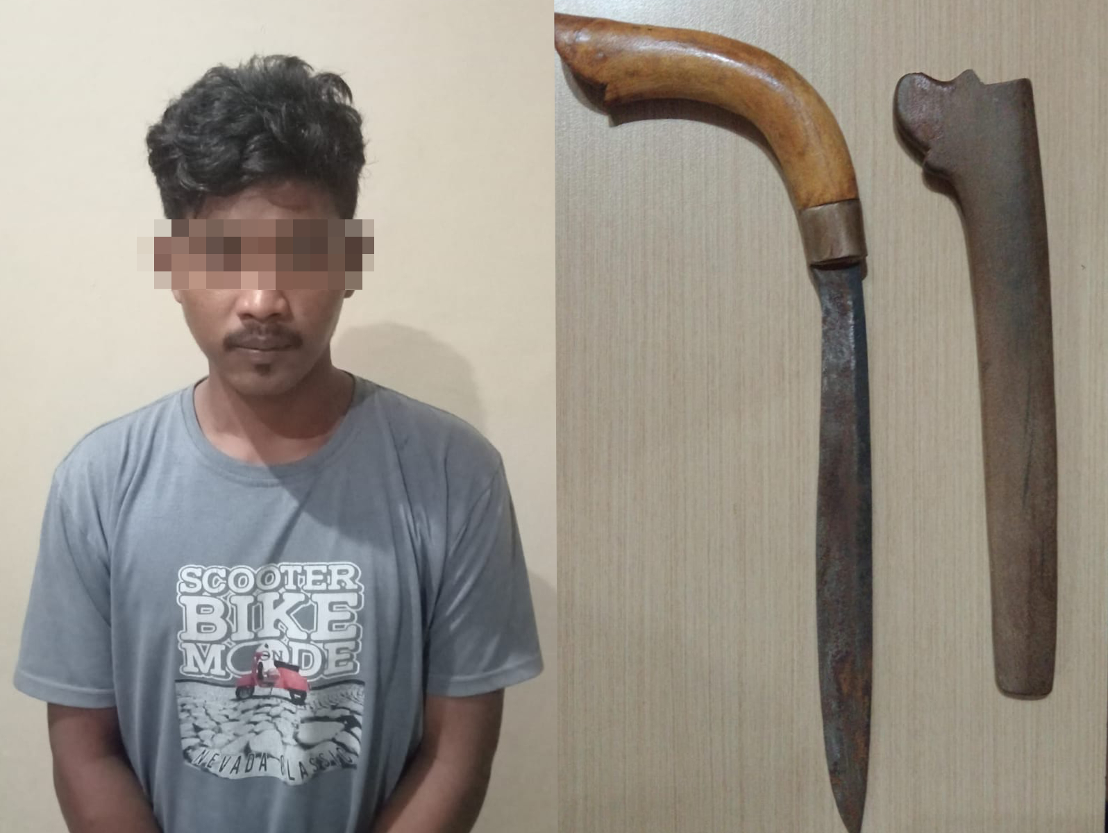 Penangkapan dilakukan setelah NH terlihat menyelipkan sebilah badik di balik punggungnya, dalam kondisi mabuk. Ia juga diketahui membawa sebilah parang yang diletakkan di kursi penumpang mobilnya.