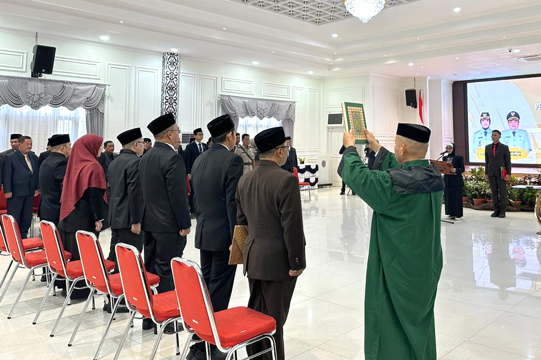 Pembacaan sumpah enam pejabat baru, Pemerintah Kota Bontang.BONTANG – BKPSDM Kota Bontang menggelar Pelantikan dan Pengambilan Sumpah Janji enam Kepala Organisasi Perangkat Daerah (OPD) di lingkungan Pemerintah Kota Bontang. Prosesi pelantikan berlangsung di Pendopo Rumah Jabatan Wali Kota, Jalan Awang Long, Senin (5/1/2026).