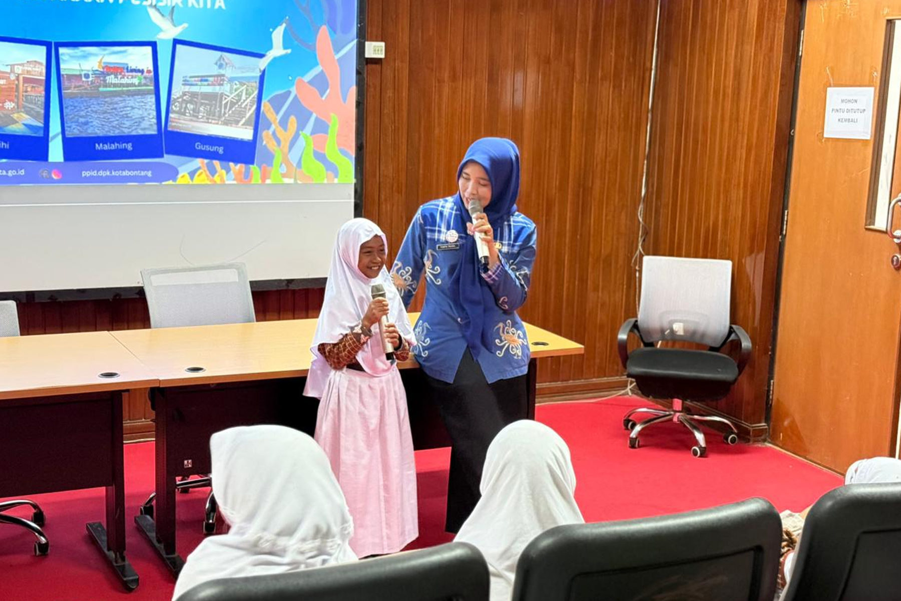 Salah satu siswi SDN 015 Bontang Selatan Selangan, saat menceritakan kembali film edikatif. (Foto: Nur/Memonesia)BONTANG – Tawa riang terdengar di halaman Dinas Perpustakaan dan Kearsipan (DPK) Kota Bontang, Kamis (23/10/2025). Sejumlah siswa Sekolah Dasar (SD) Negeri 015 Bontang Selatan Selangan tampak bersemangat menuruni mobil layanan keliling yang membawa mereka menyeberangi laut menuju pusat kota. Hari itu, mereka bukan sekadar berkunjung—mereka datang untuk menjelajah dunia literasi lewat program Layanan Perpustakaan Pesisir Kita (Layar Puspita).