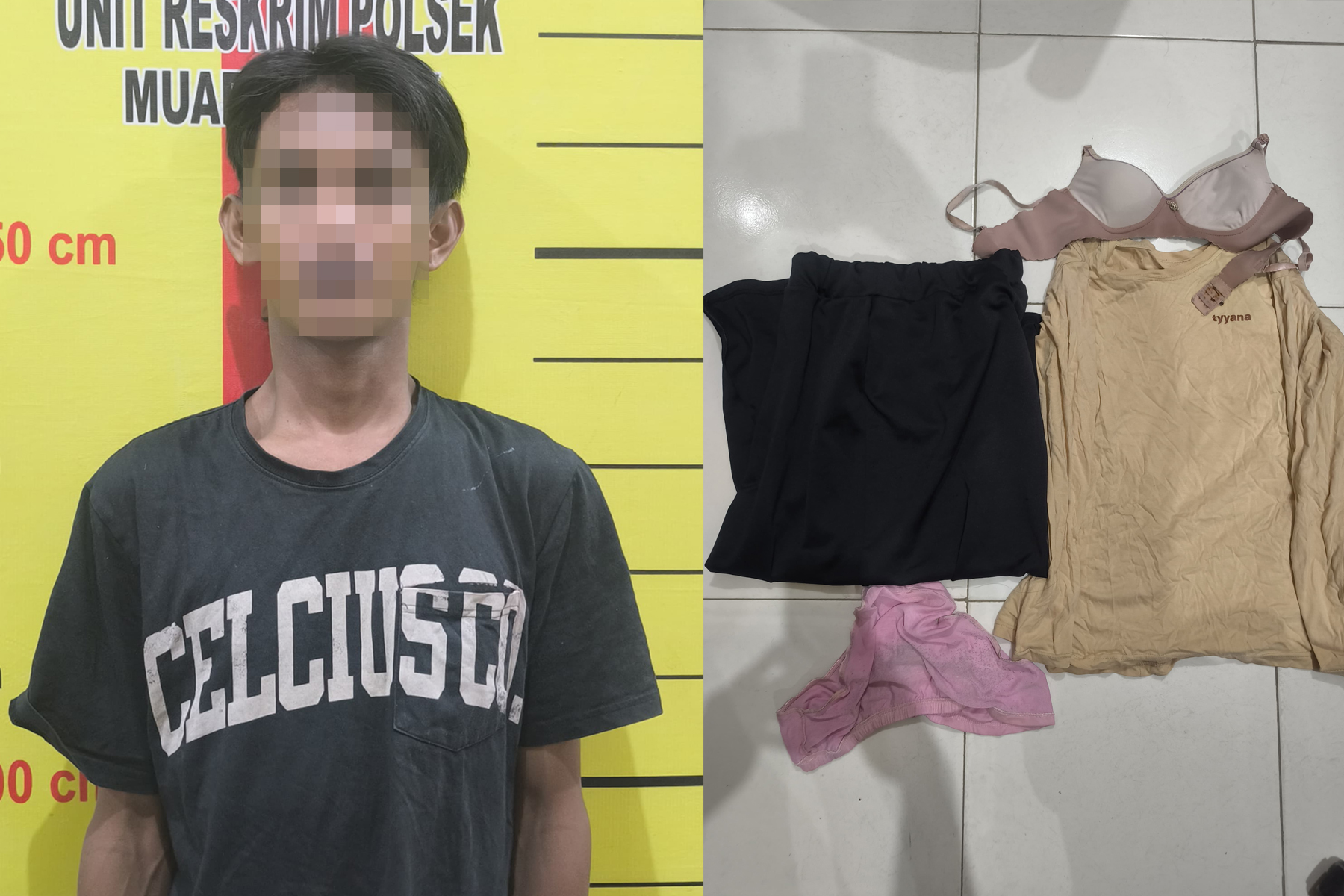 Barang bukti yang diamankan antara lain empat lembar pakaian milik korban dan satu kasur spring bed biru yang digunakan saat kejadian.