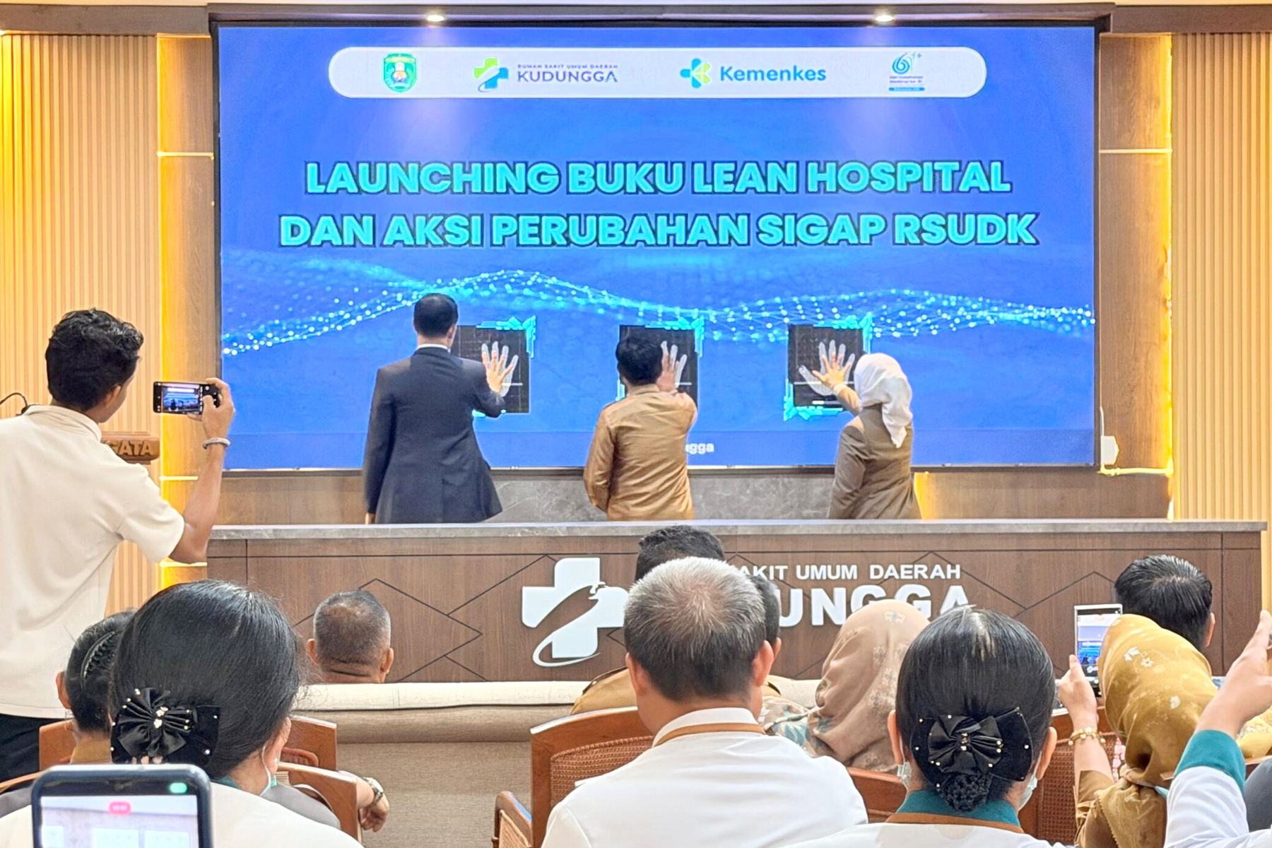 Direktur RSUD Kudungga Muhammad Yusuf meresmikan peluncuran buku Lean Hospital yang merangkum perjalanan transformasi rumah sakit menuju pelayanan unggulan yang lebih humanis dan adaptif.